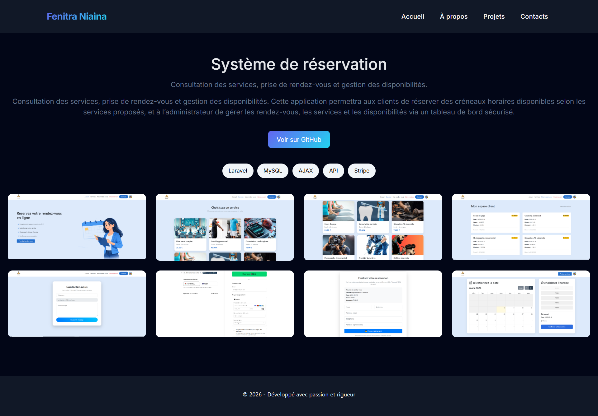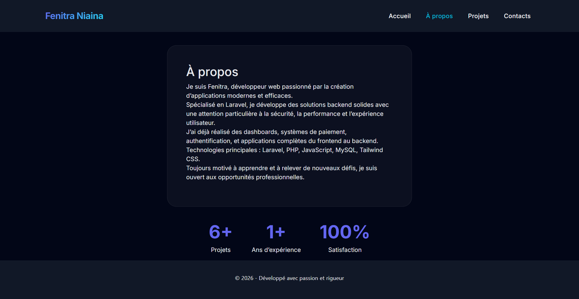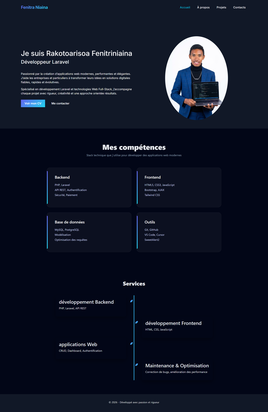 Développeur web passionné, spécialisé en Laravel, je vous accompagne dans la création de vos applications web sur mesure : sites vitrines, systèmes de gestion, plateformes de réservation ou e-commerce.