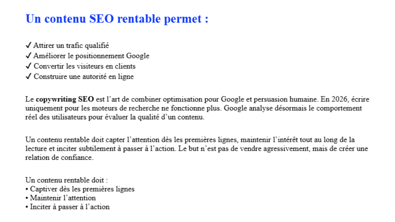 - Copywriting optimisé seo
