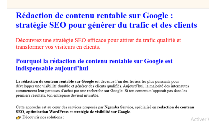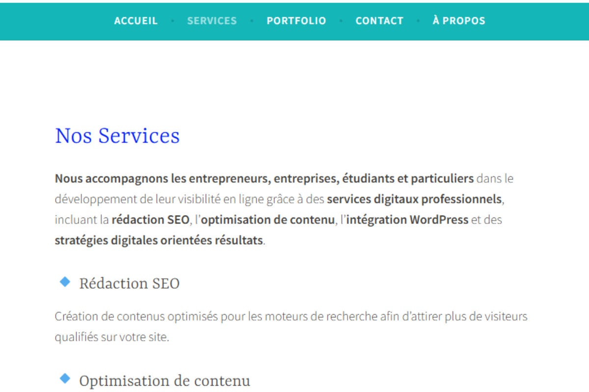 🔎 Grâce à une stratégie SEO efficace, je rédige des articles optimisés qui ne se contentent pas d’être lus… mais qui rapportent des résultats concrets.