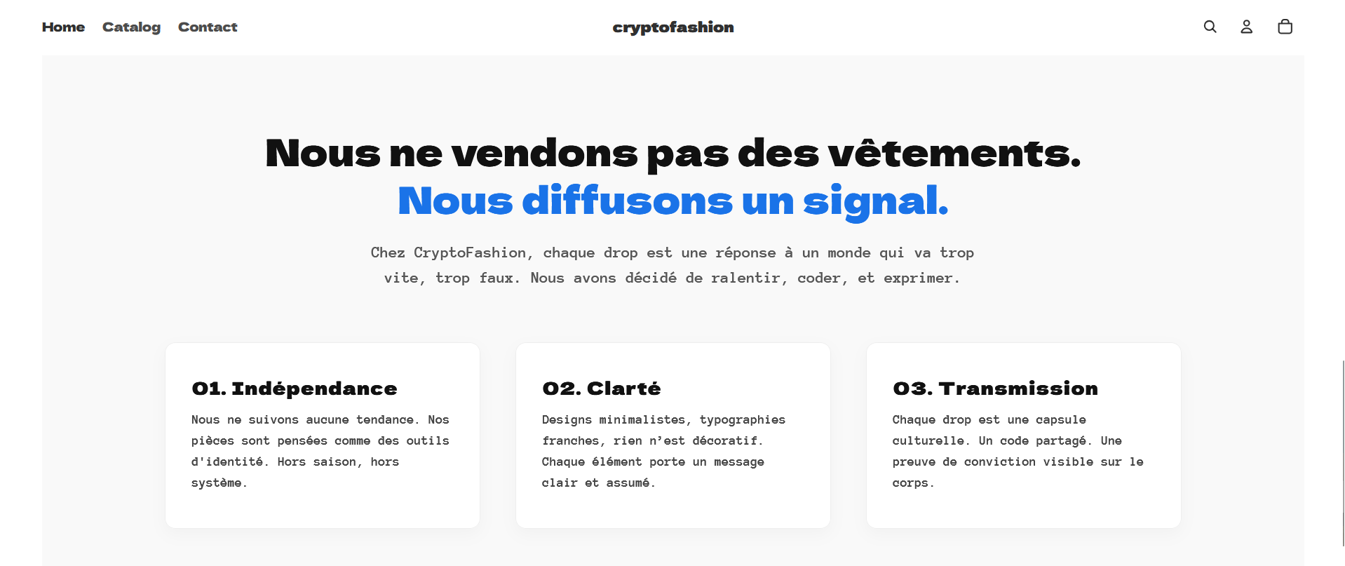 Faites le choix de l'efficacité avec une livraison express et un design premium qui rassure vos clients. Je m'occupe de tout l'aspect technique pour que vous puissiez vous concentrer sur l'essentiel : développer votre marque et vendre.