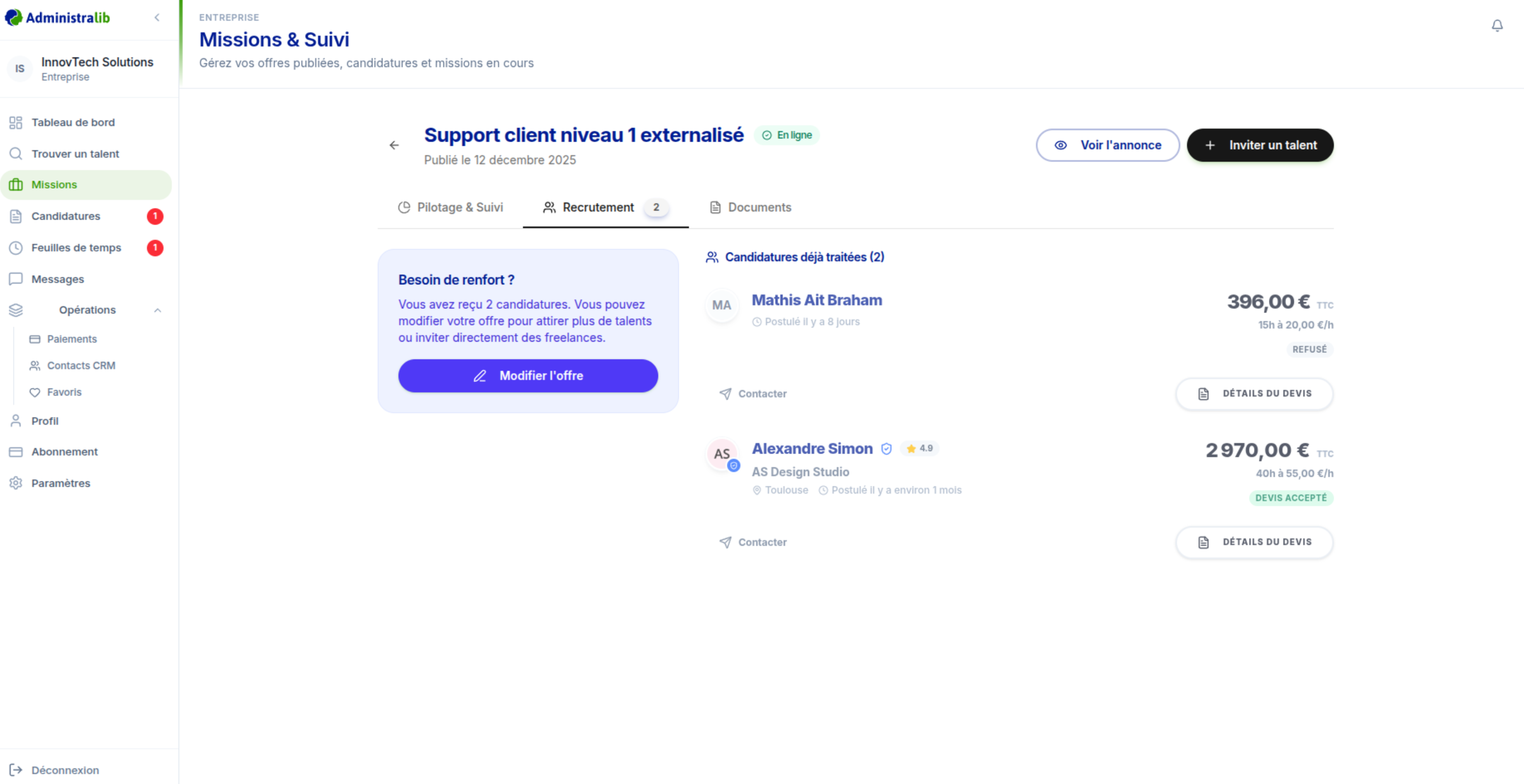 Expériences professionnelles