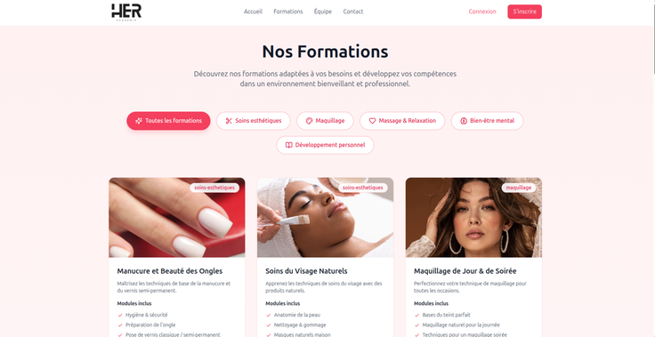 Conception et développement complet d’une application web e-learning proposant des cours dans les métiers du bien-être et de la beauté (massage, soins esthétiques, maquillage, manucure, etc.).