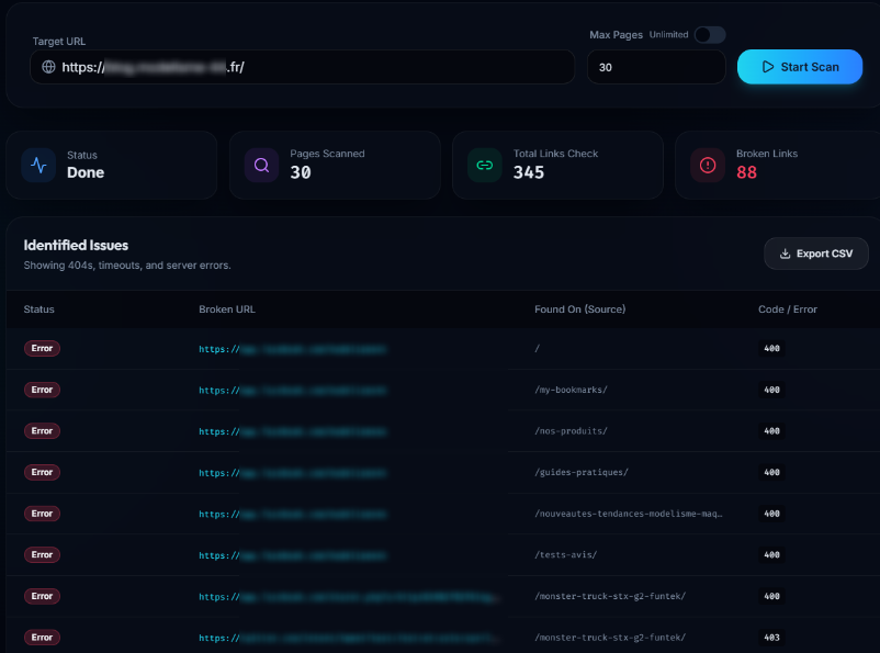 Je vais réaliser un audit complet de vos liens cassés (404) pour booster votre SEO