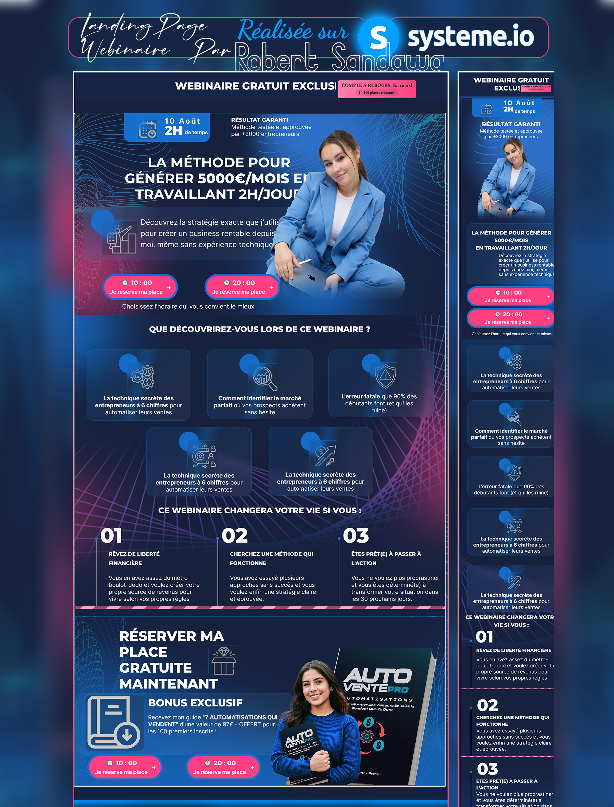 Spécialisé dans la création de funnels de vente haute performance qui transforment vos visiteurs en clients fidèles. Je conçois des landing pages modernes avec des automatisations intelligentes pour maximiser vos conversions 24/7.