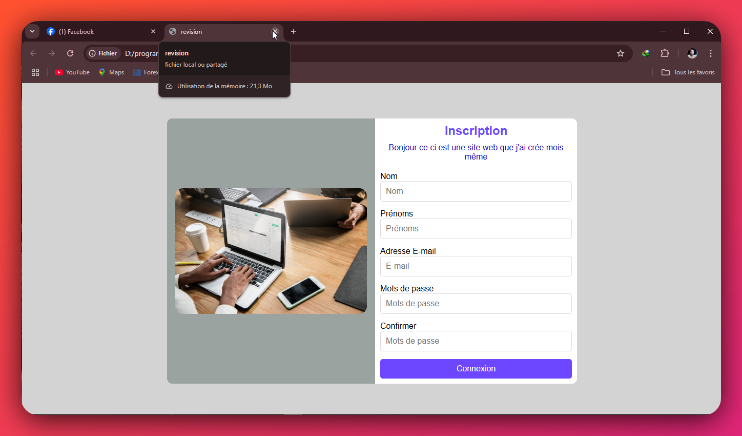 J'ai développé des sites web avec HTML ,CSS, PHP et MYSQL en intègrent des fonctionnalités comme l'inscription et la connexion des utilisateurs