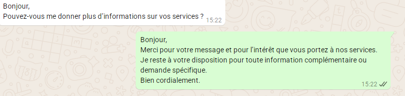 Sérieuse, réactive et orientée satisfaction client, je m’adapte rapidement à vos outils et procédures. Mon objectif est de vous faire gagner du temps et d’assurer une expérience client professionnelle et fluide.