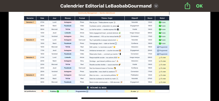 - Création et gestion de calendriers éditoriaux