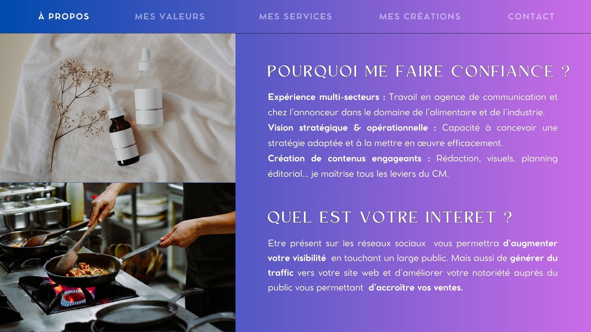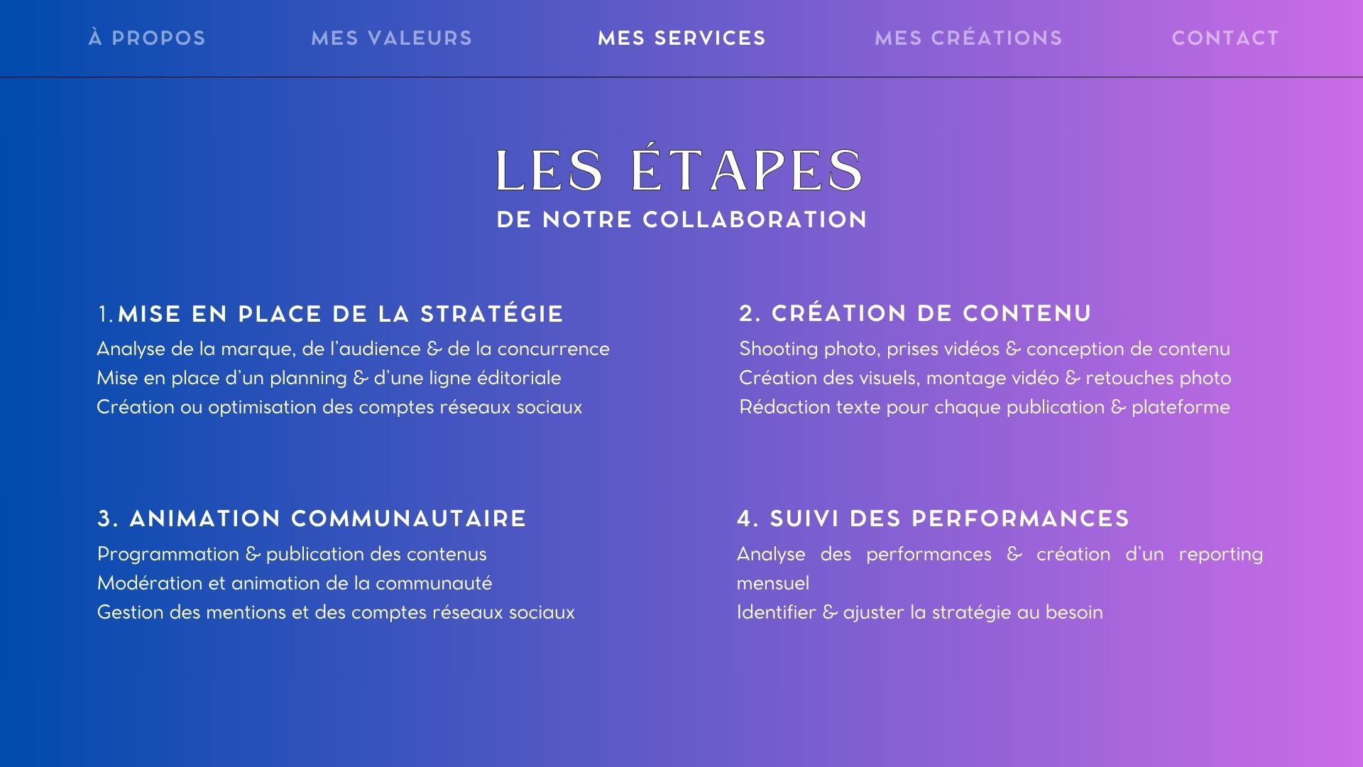 Je vous aide à créer une présence digitale à votre image – authentique, attractive, et surtout fidèle à ce que vous êtes. Mon rôle est de raconter ce que vous faites de mieux, d’attirer l’attention, de générer de la visibilité et de renforcer la fidélité… sans que vous ayez à vous en occuper.