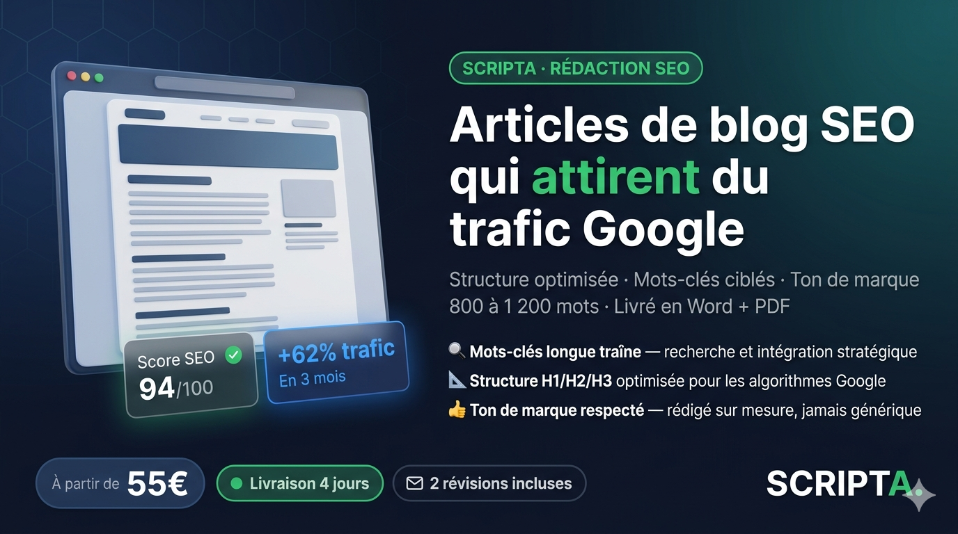 Vous cherchez quelqu'un pour rédiger à votre place — et obtenir de vrais résultats ? C'est exactement ce que fait Scripta.