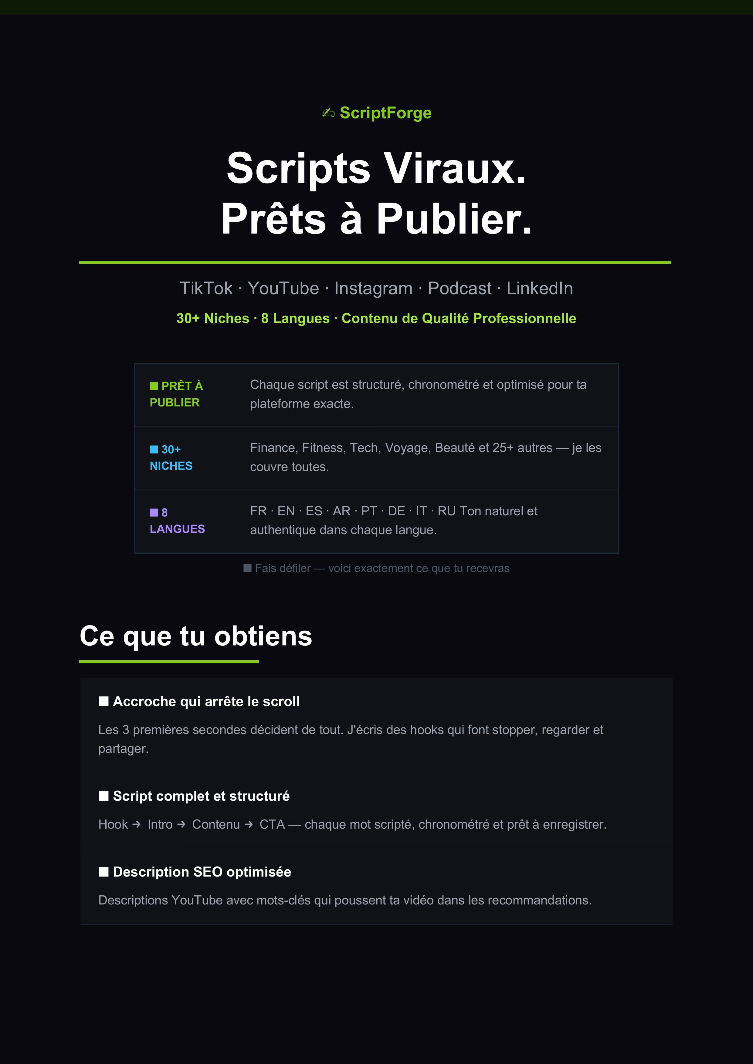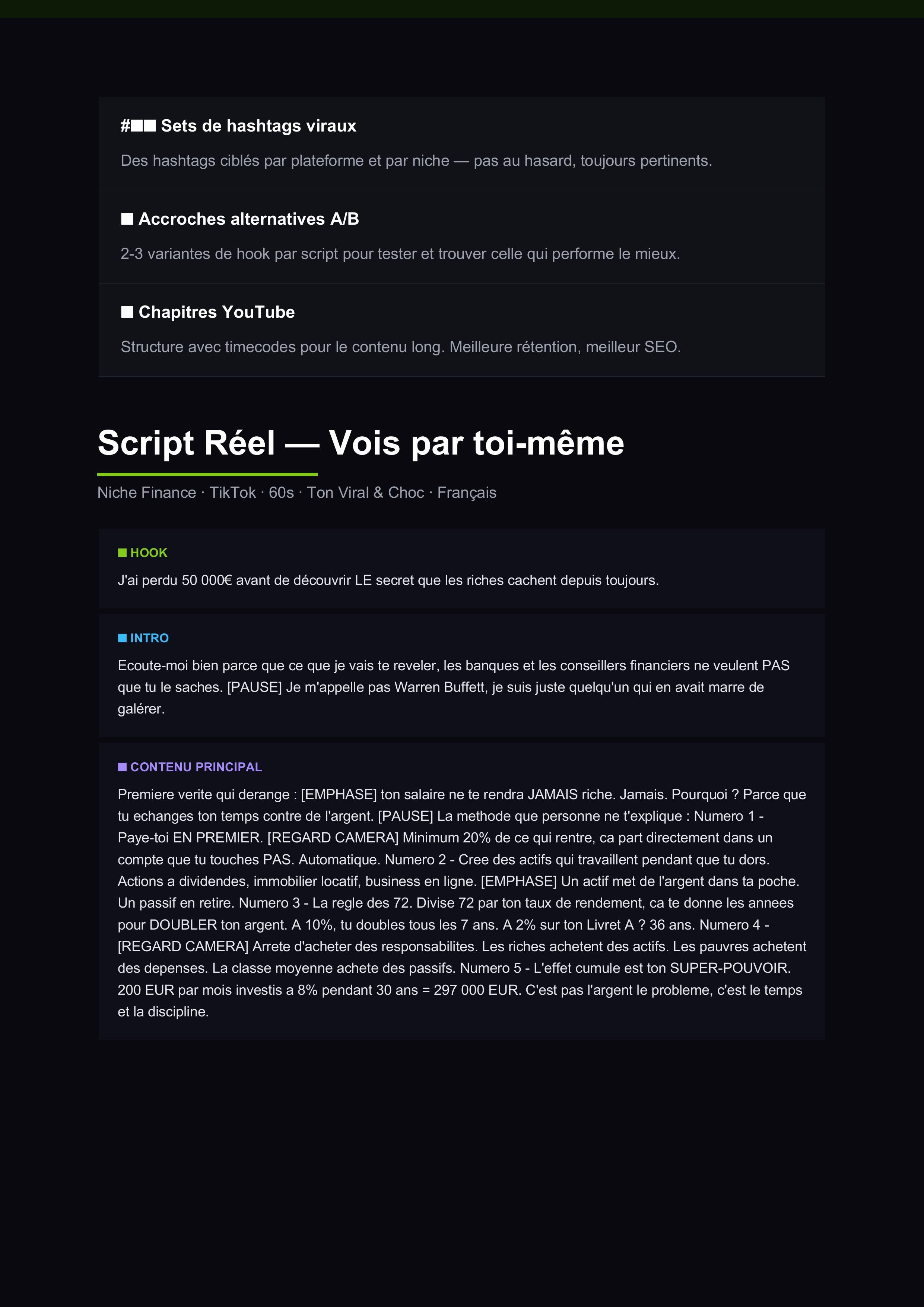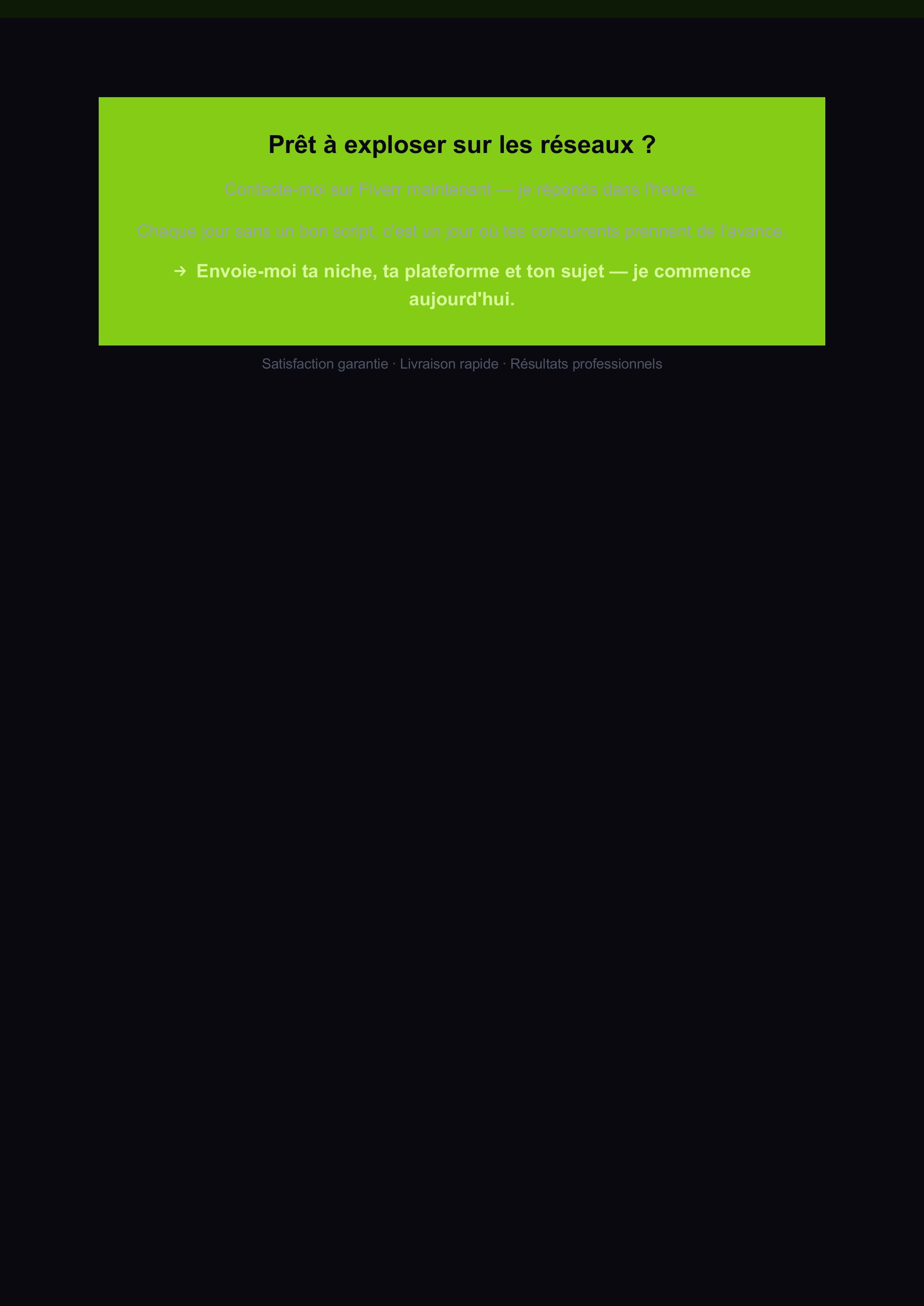 Je crée des scripts viraux prêts à tourner, conçus pour :