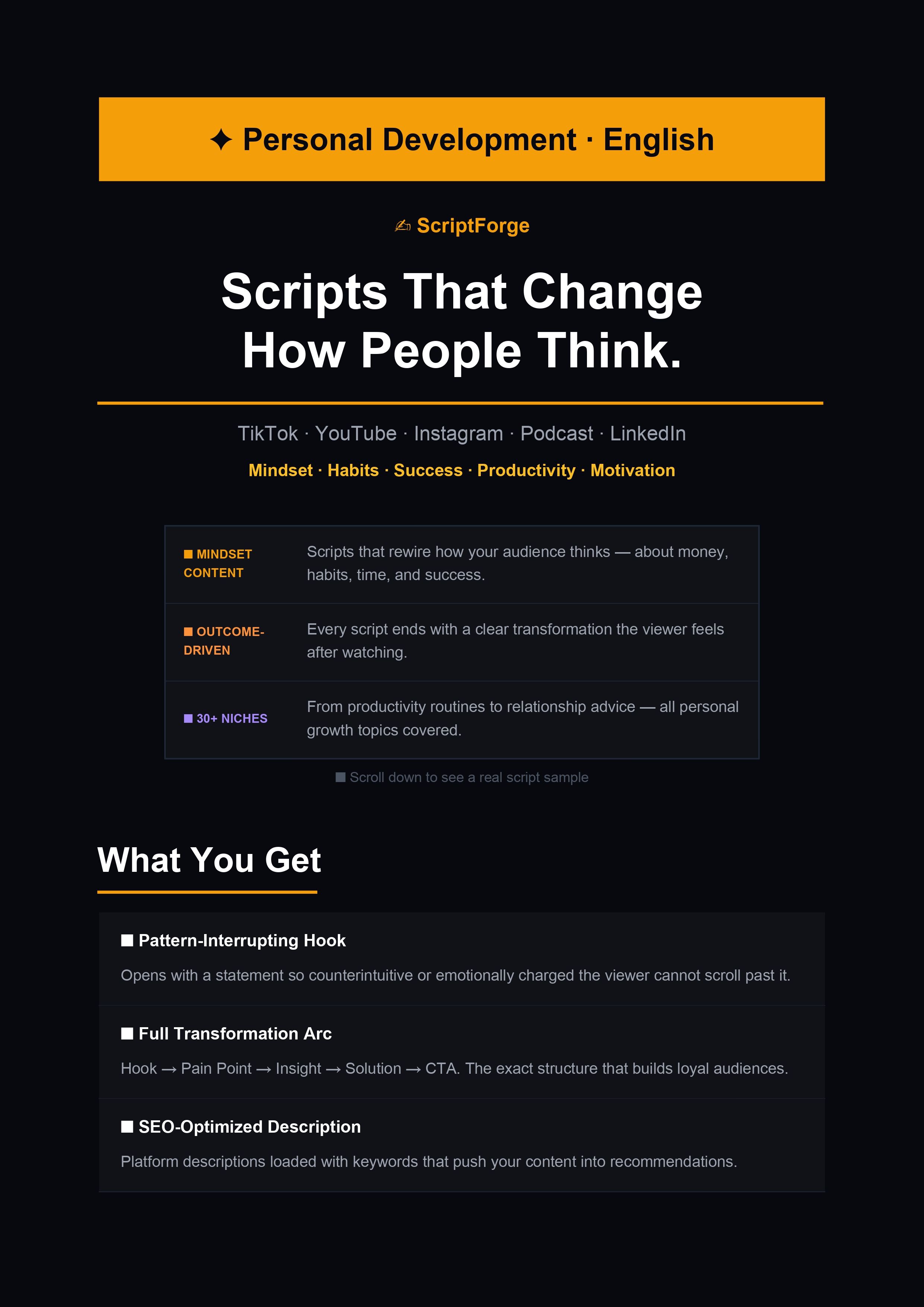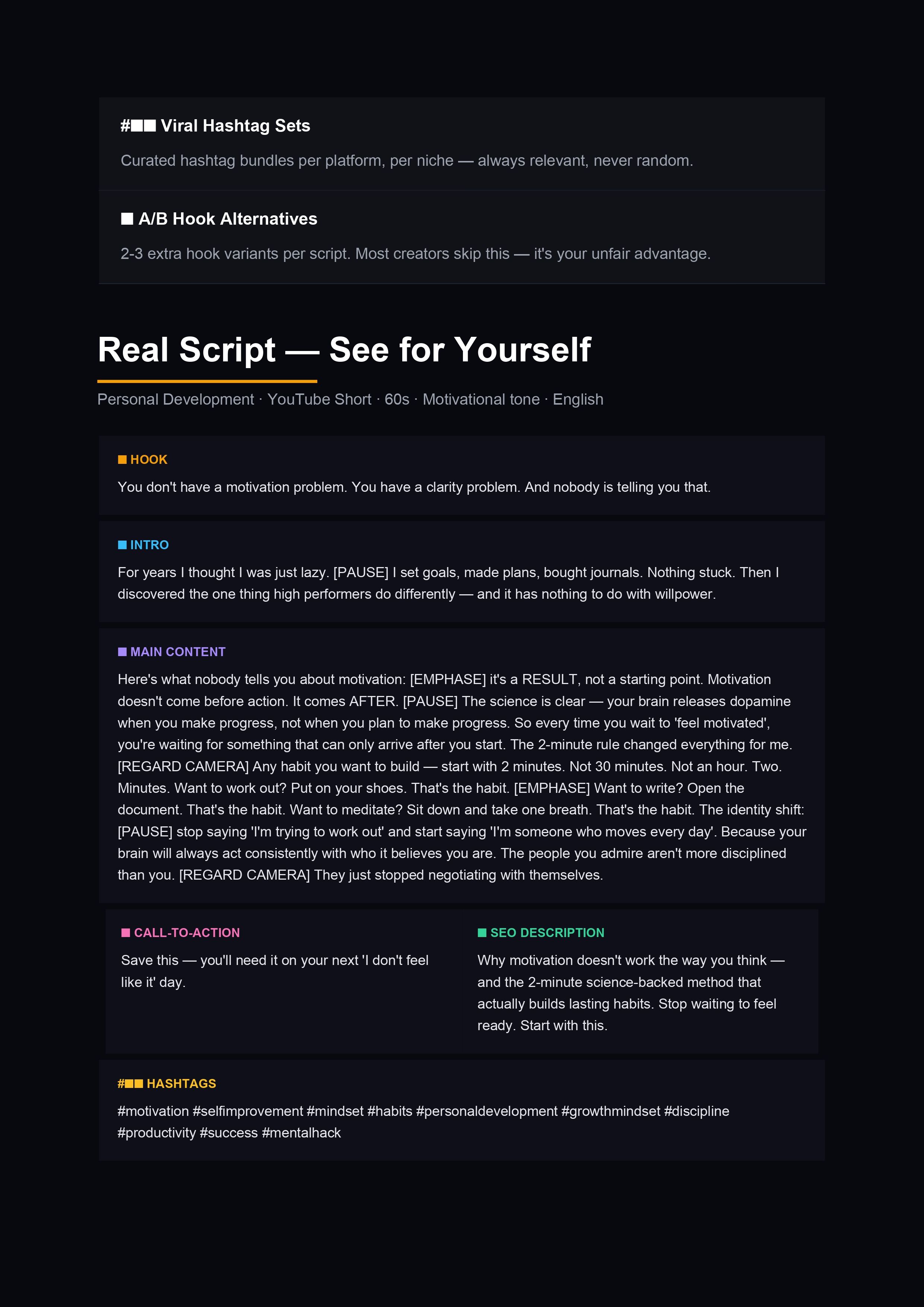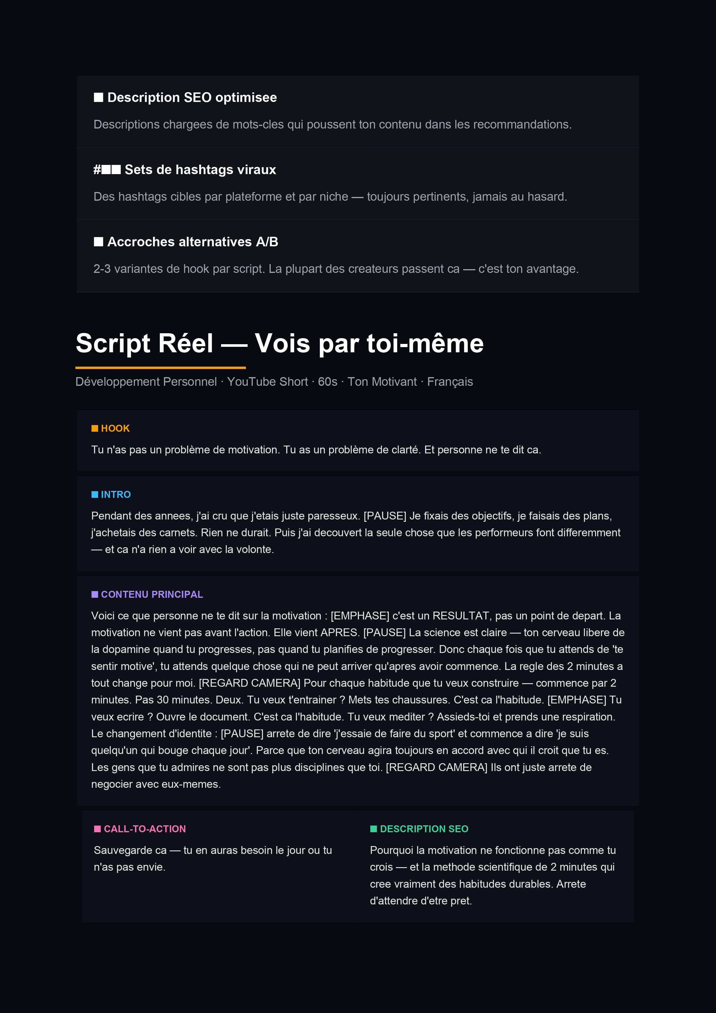 Je crée des scripts viraux prêts à tourner, conçus pour :