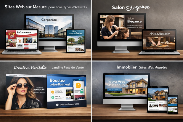 • Site vitrine professionnel • Site pour artisan ou commerçant • Site pour entrepreneur ou freelance • Site pour agence ou activité de service • Site pour association • Blog professionnel • Landing page de vente • Site portfolio