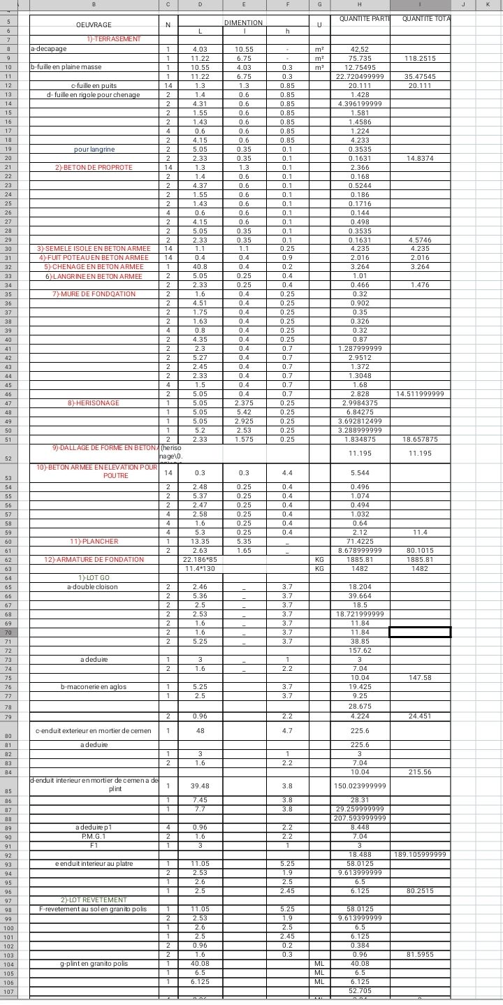 Je vais réaliserai le métré et devis estimatif pour votre projet bâtiment
