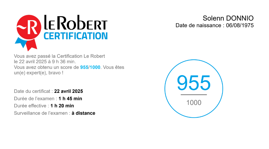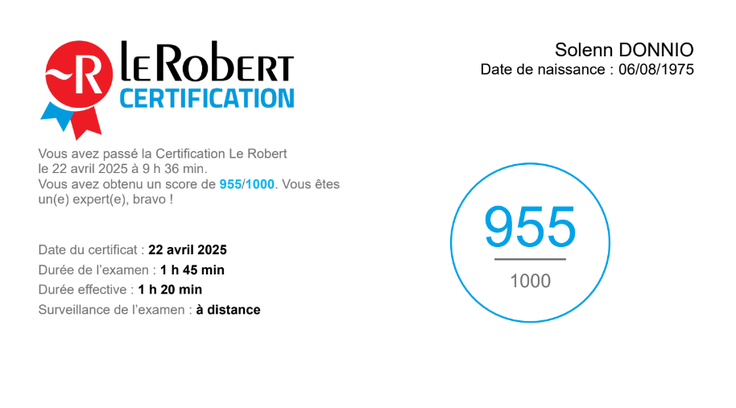 - Certification en orthographe Le Robert - Niveau Expert Le Robert ‐ avr. 2025