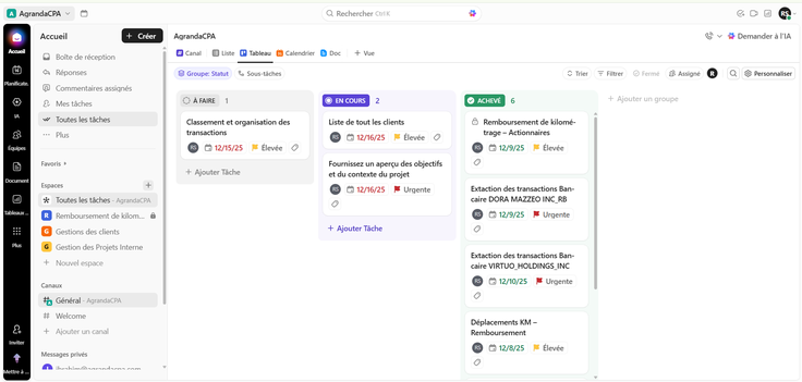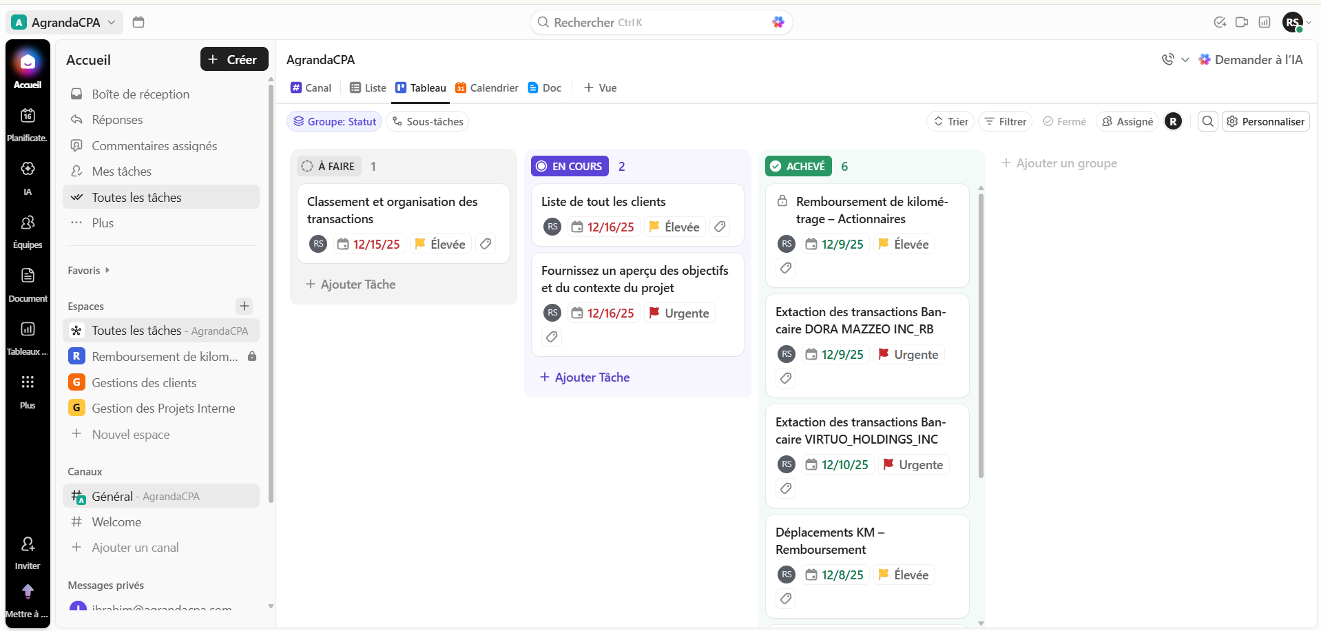 Je vais créer et structurer votre espace ClickUp complet pour organiser vos projets, tâches et workflow