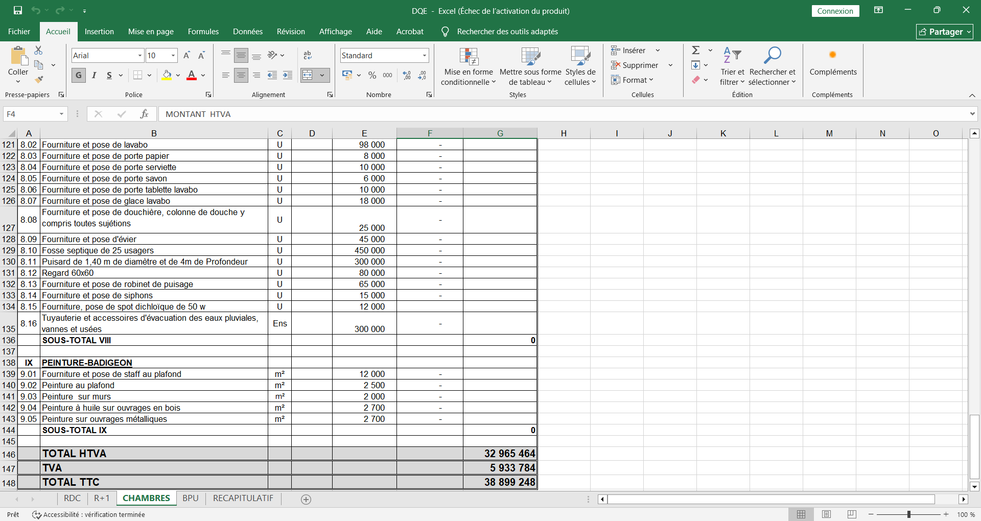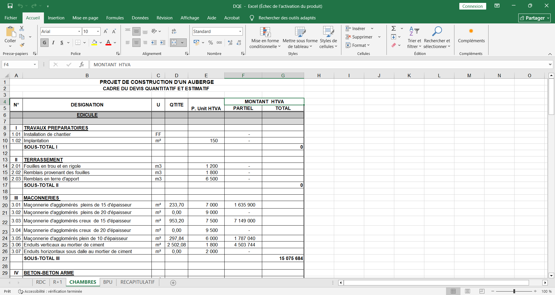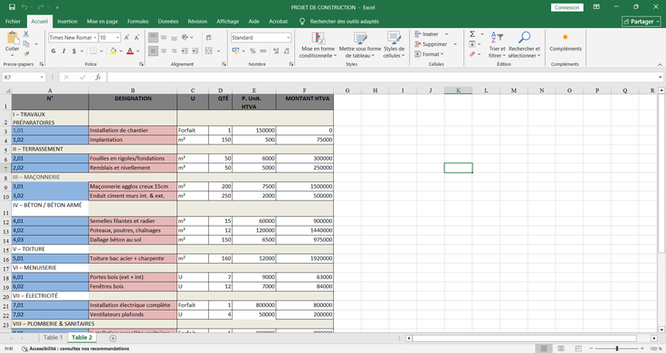 Je vais vous faire le devis détailler de matériaux et matériel de votre projet de construction