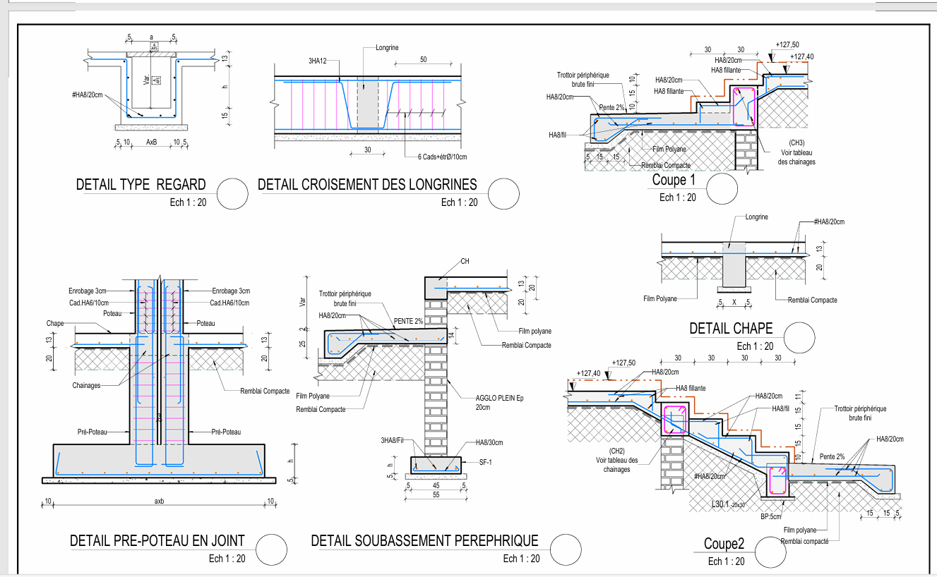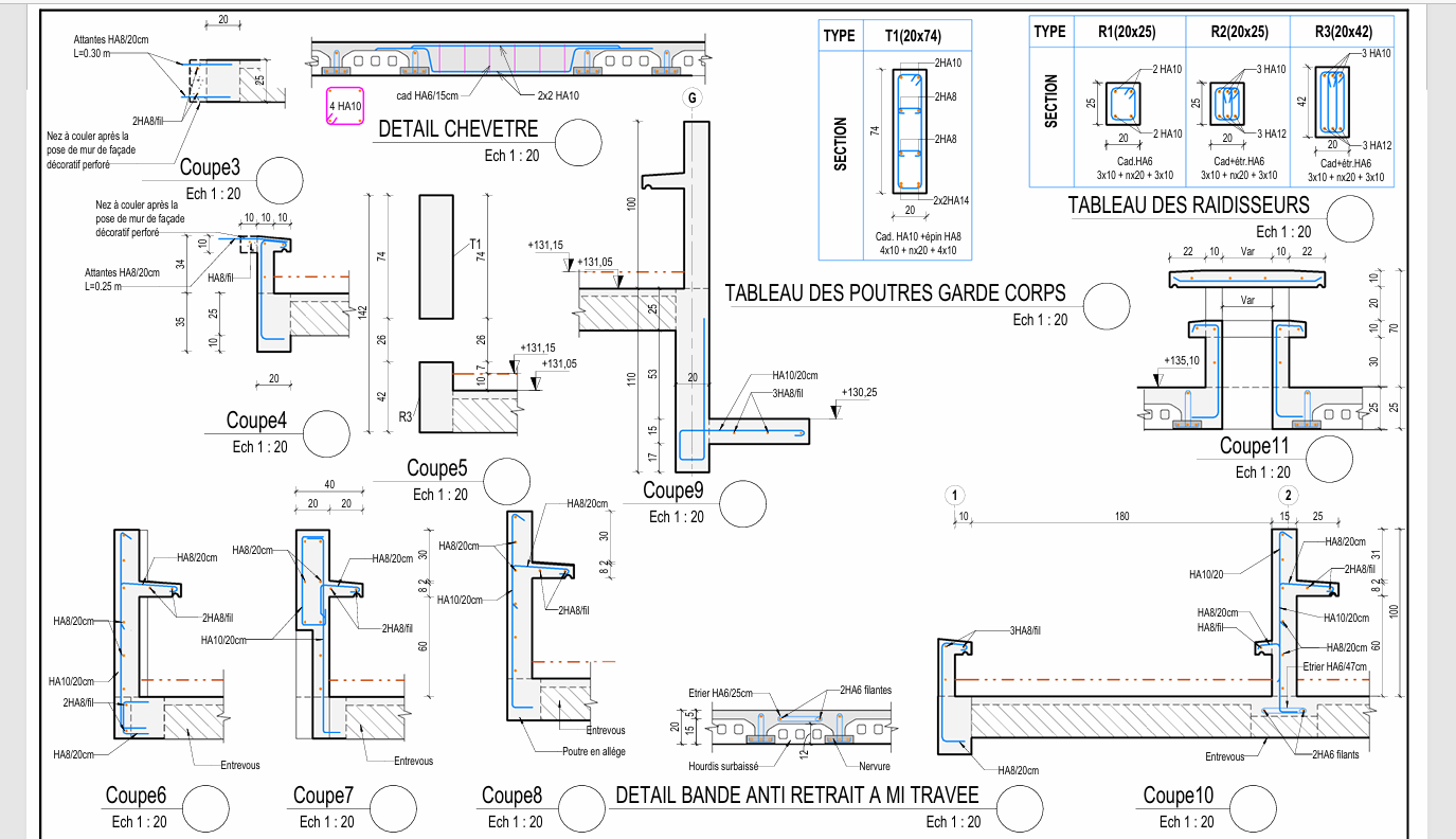 Dessin technique professionnel (plans de coffrage, ferraillage, exécution)