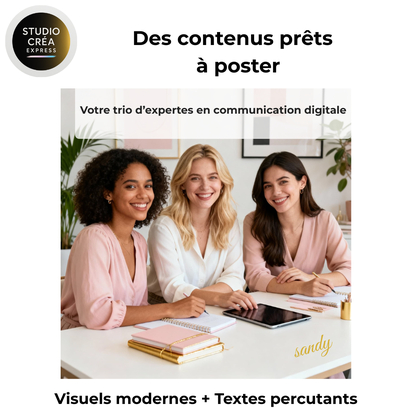 Je vais créer des visuels et textes élégants prêts à poster sur Instagram, Facebook et LinkedIn