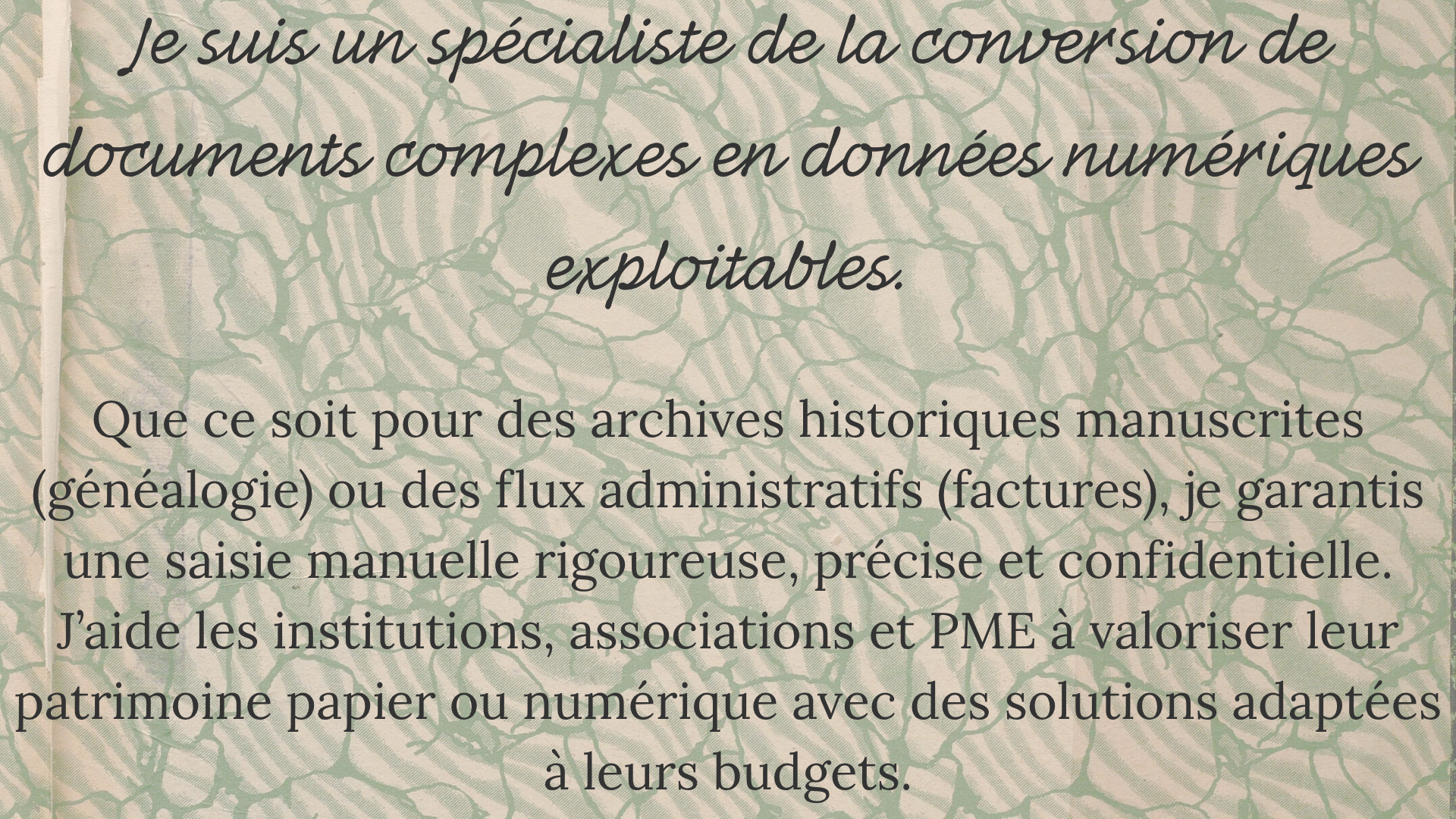 Je vais indexer vos archives historiques et saisir vos données administratives avec précision
