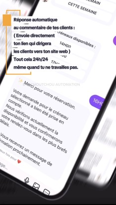 • répondre instantanément aux clients • automatiser les messages privés et commentaires • qualifier les prospects automatiquement • envoyer des informations ou offres en automatique • faciliter la prise de rendez-vous