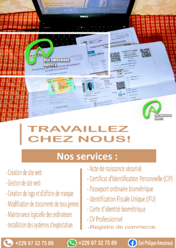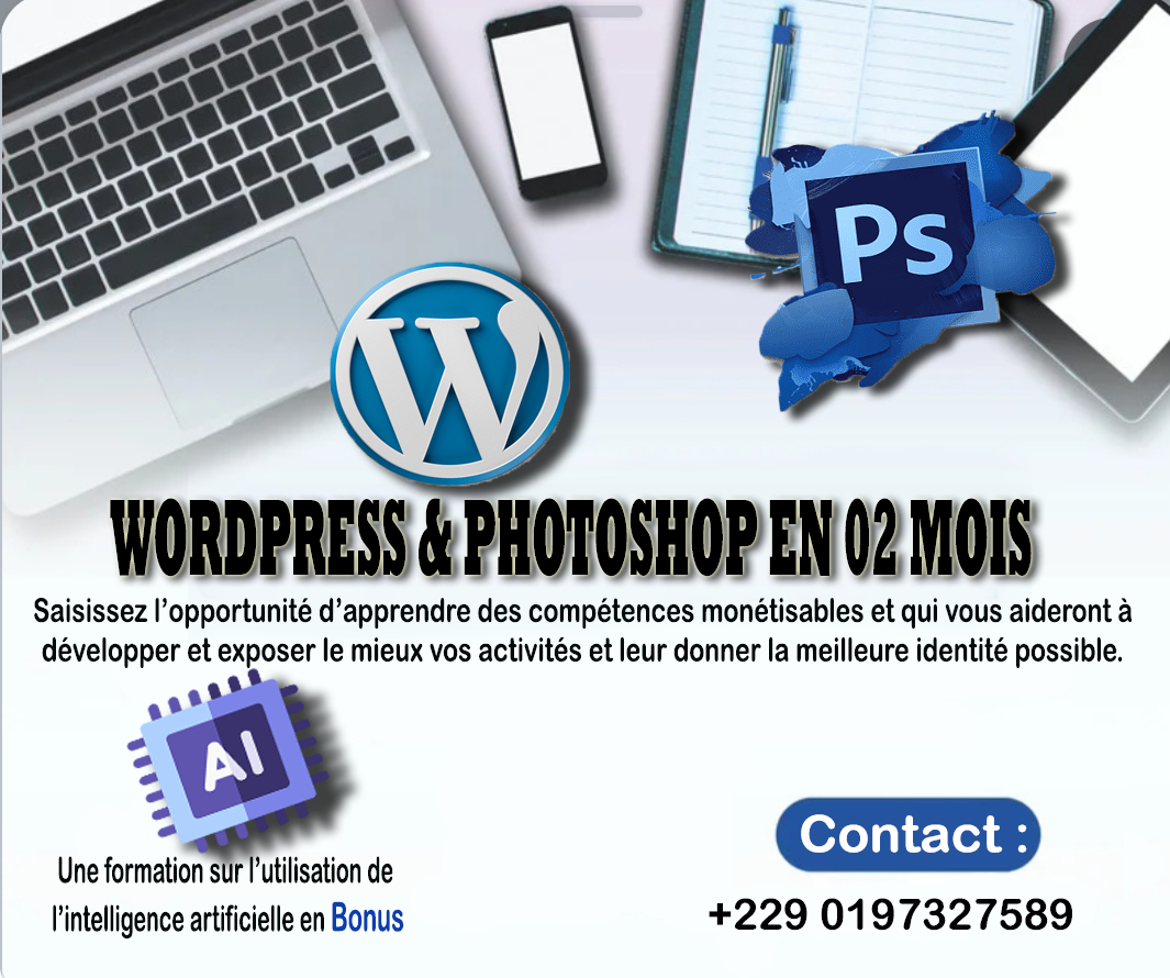 Développeur web (WORDPRESS), Expert en utilisation des logiciels PHOTOSHOP et CANVA. Etant un jeune homme très dynamique, réactif, objectif, prompt et organisé dans mon travail, je souhaite mettre à la disposition de toute personne ou entreprise sérieuse, mes compétences et connaissances pour accomplir toutes les tâches qui me seront confiées dans le but d'apporter un grand plus dans l'épanouissement des entreprises de mes clients respectifs. Merci et à bientôt !