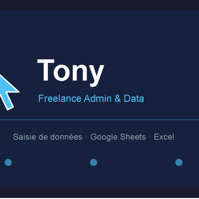 👋 Bonjour, je m'appelle Tony ! Je vous propose mes services de saisie de données et d'assistance administrative à distance. Ce que je peux faire pour vous :