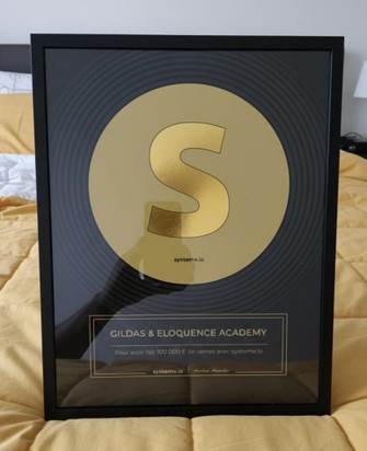 - Un trophé Or, décerné par Systeme.io, l’une des plus grandes plateformes francophones de marketing et de vente en ligne, pour avoir généré 100.000 € avec l'académie ELOQUENCE ACADEMY