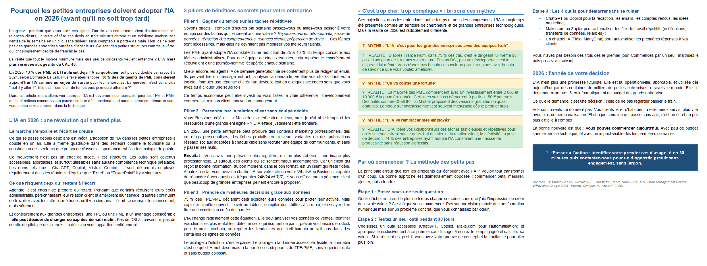 J’utilise des outils d’IA pour la recherche, la structuration et l’optimisation SEO, puis je retravaille chaque article manuellement afin de garantir :