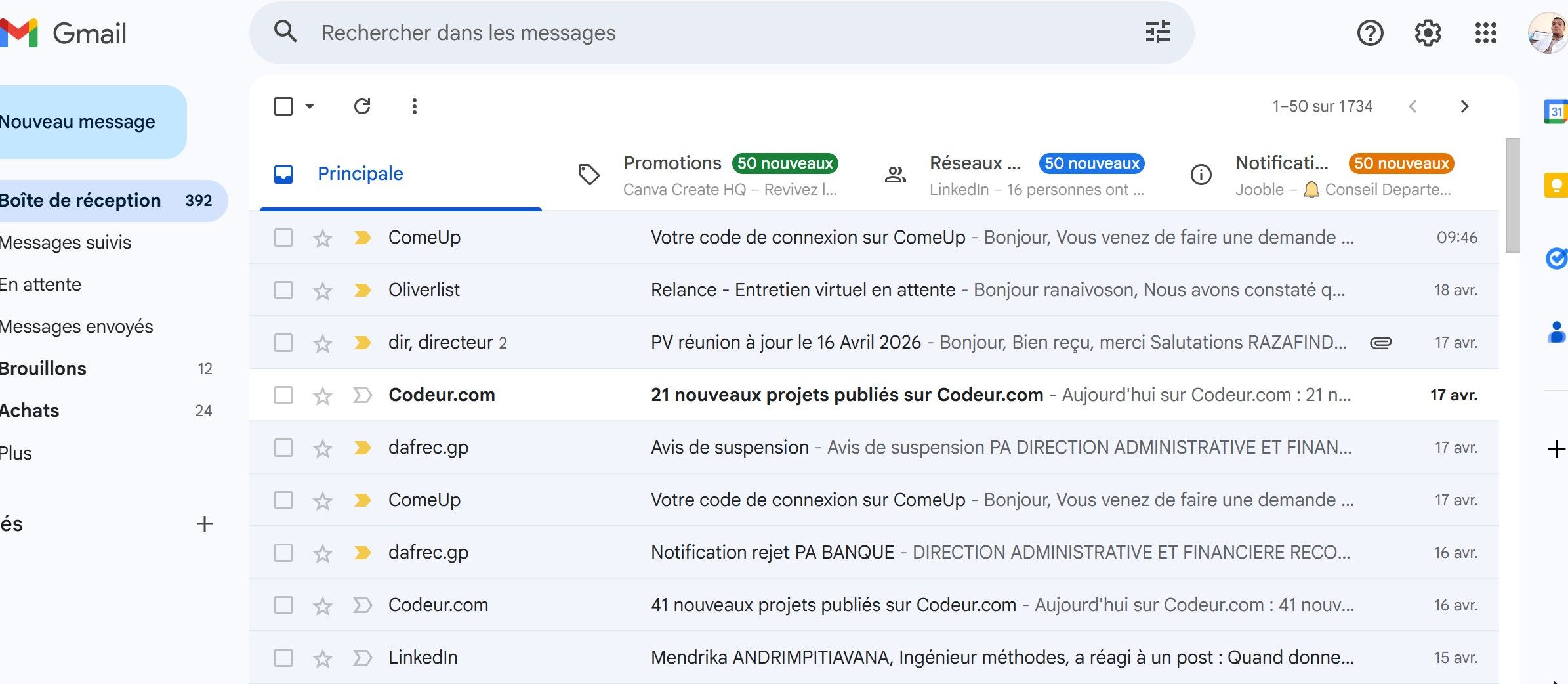 Gestion et organisation de boîtes email Saisie de données et mise à jour de fichiers Excel / Google Sheets Recherche web et collecte d’informations Suivi des tâches et gestion de calendrier -