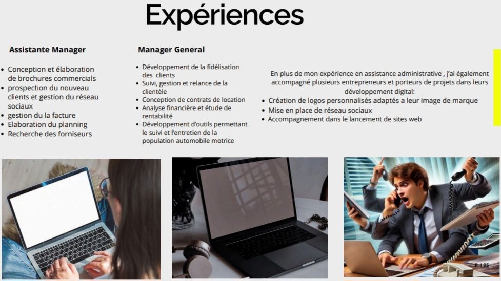 J'ai accompagné une structure dans la gestion quotidienne: traitement de mails, organisation de documents, suivi de factures, prise de rendez-vous et préparation de tableaux. J'assure un travail sérieux, organisé et confidentiel.