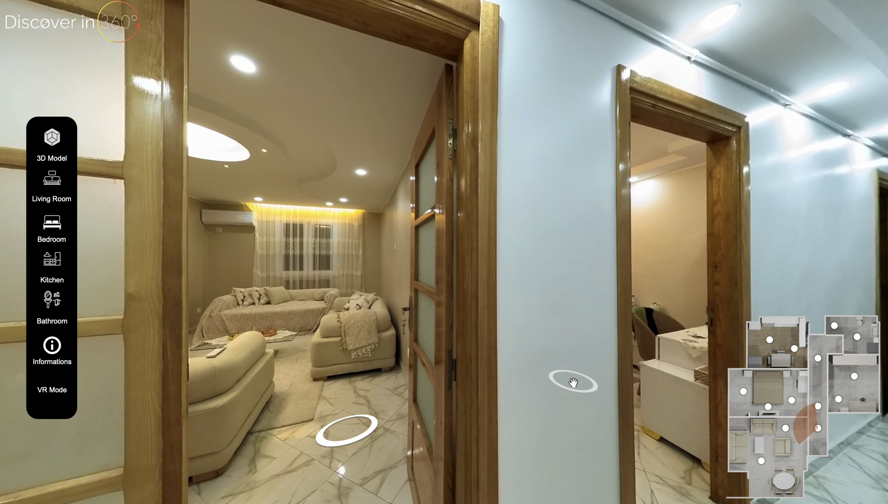 Je travaille sur 3DVista, un outil puissant qui me permet de personnaliser entièrement votre visite virtuelle selon vos attentes : intégration de menus interactifs, photos/vidéos, voix-off, hotspots, musique, branding, et bien plus encore.