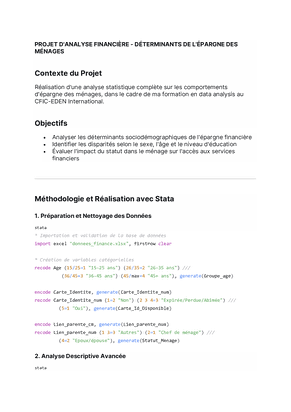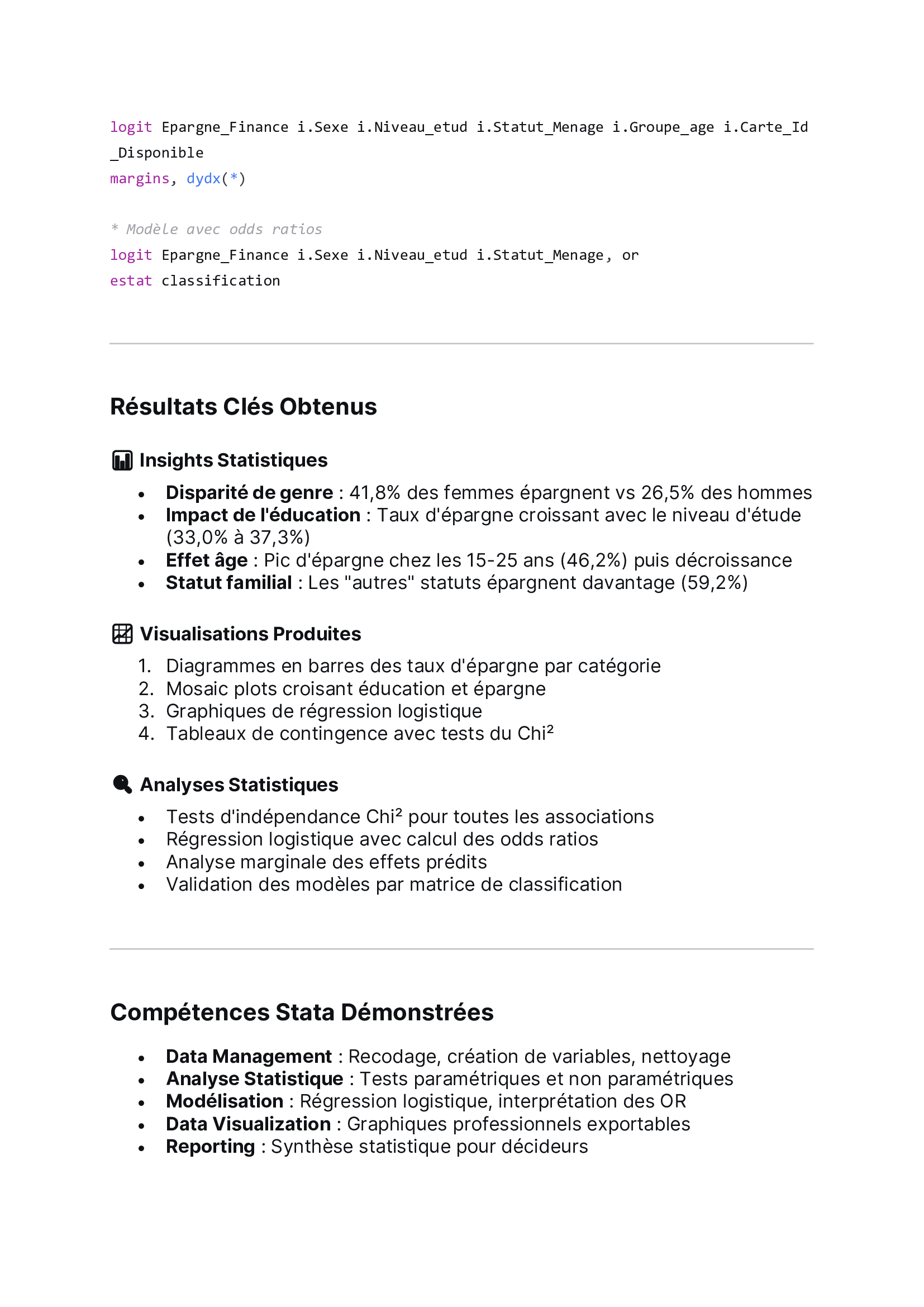 Diplômé de formations certifiées en Data Analyste (CFIC Eden International, Cisco Networking Academy), je maîtrise l'ensemble de la chaîne de valeur de la donnée : de la conception d'enquêtes (KoboToolbox, Sphinx) au traitement statistique avancé (Excel, SPSS, Stata, Python), en passant par la visualisation des données(Power BI, Tableau, Python). Je mets mes compétences à votre service pour transformer vos données en insights actionnables.
