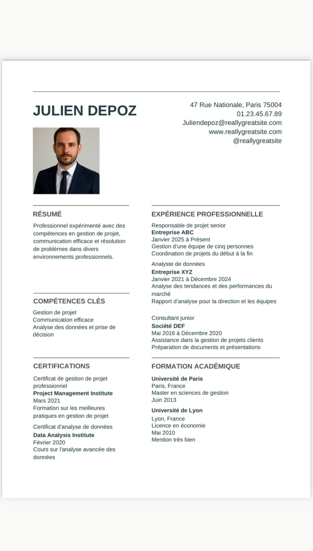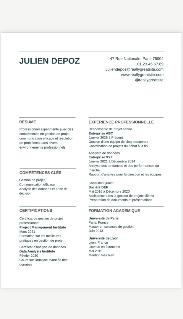 Je vous aide à obtenir un document clair, professionnel et adapté à votre objectif (emploi, alternance, reconversion).