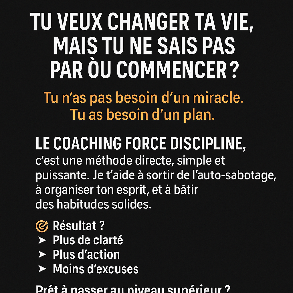 🎓 Professeur d’informatique, ✍️ écrivain et 🎯 coach en discipline & mindset, j’aide les entrepreneurs, auteurs et créateurs à transformer leurs idées en projets concrets et percutants. Voici ce que je vous propose ici :
