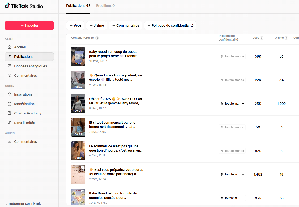 Je vais analyser votre Boutique TikTok Shop et vous donner un plan pour générer vos premières ventes