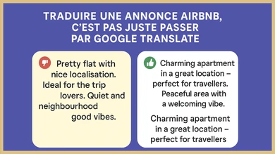 Je vais traduire votre annonce Airbnb en anglais, prête à coller et professionnelle