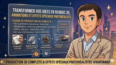 Je vais transformer vos idées en rendus 3D, animations et effets spéciaux photoréaliste