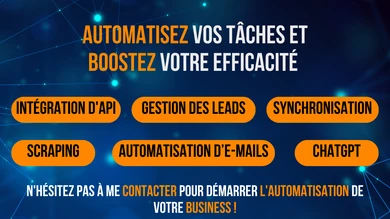 Vous souhaitez gagner du temps et automatiser vos processus ? Un expert en Automatisation IA met en place des systèmes intelligents capables de gérer vos tâches répétitives, fluidifier vos workflows et réduire vos coûts opérationnels. Boostez votre productivité grâce à des automatisations réellement adaptées à votre activité et concentrez-vous sur ce qui crée le plus de valeur.