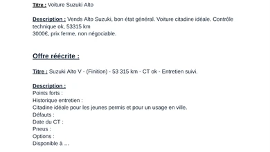 Je vais rédiger une annonce auto qui attire des acheteurs sérieux