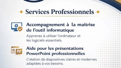 Je vais vous accompagner à maîtriser l'outil informatique, faire des présentation power point
