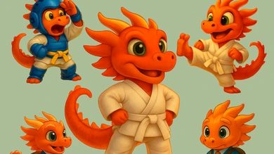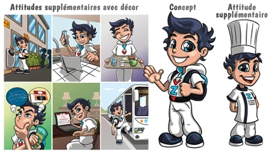Je vais créer une mascotte sportive personnalisée avec poses dynamiques et storytelling