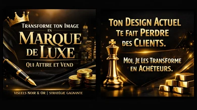 Je vais transformer ton business en une marque luxe qui attire et vend automatiquement. Visuels noir & or