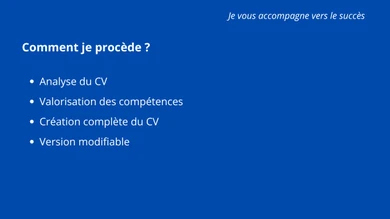Je vais prendre en charge votre CV et rédiger vos lettres de motivation pour booster vos candidatures