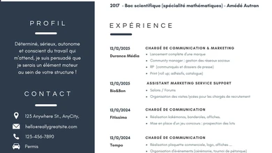 Je vais créer un CV professionnel, élégant et percutant en français ou en anglais