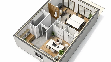 Je vais créer le plan 3D de votre futur bien avec l'aménagement intérieur en partant du plan 2D existant