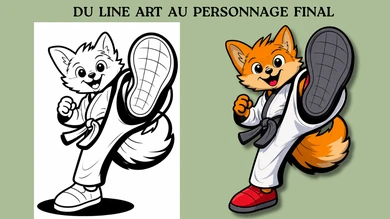 Je vais créer une mascotte sportive personnalisée avec poses dynamiques et storytelling