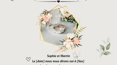 Je vais vous créer une invitation pour votre mariage unique et personnalisée avec le thème de votre choix