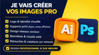 Je vais concevoir votre identité graphique et vos supports visuels avec un rendu professionnel haut de gamme