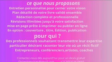 Je vais écrire votre livre,votre histoire entre 150 ou 300 pages avec votre thème
