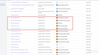 Je vais configurer le méta Facebook Pixel Shopify, l'API de conversion, ga4, GTM, corriger le pixel